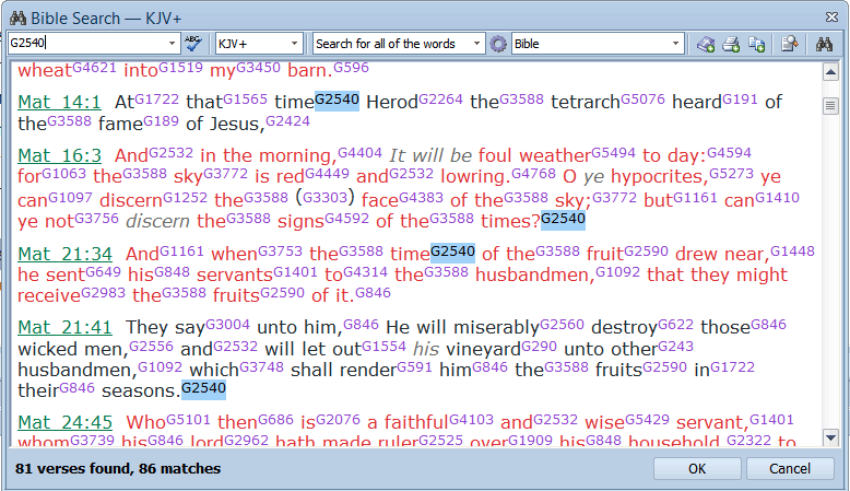 Command line utility to test and verify word matches/patterns in the King James Version Bible with Greek and Hebrew Strong Codes