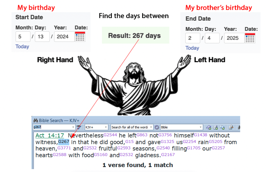 ) Code between birthdays of myself and brother is 267 - Biblical code for witness