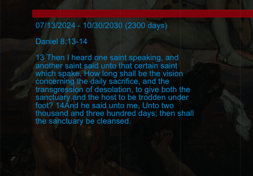 Through Biblical codes and patterns I extracted from the King James Version of the Bible. The prophetic rules were already defined in Daniel and Revelation.  There is a timeline defined in Daniel 12:7 which consists of 1290 units for half a week; 2580 for a full week.  The other timeline was defined in Revelation 11:3 which consists of 1260 days for half a week; 2520 for a full week.  And finally, there was one final clue that was given that would unseal the start of the timeline.