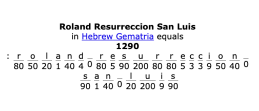 Roland Resurreccion San Luis in Hebrew Gematria equals 1290