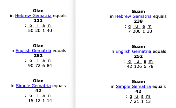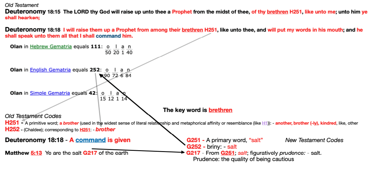 ) English Gematria of Nickname "Olan" is 252 - matches H251 brethren and H252 brother