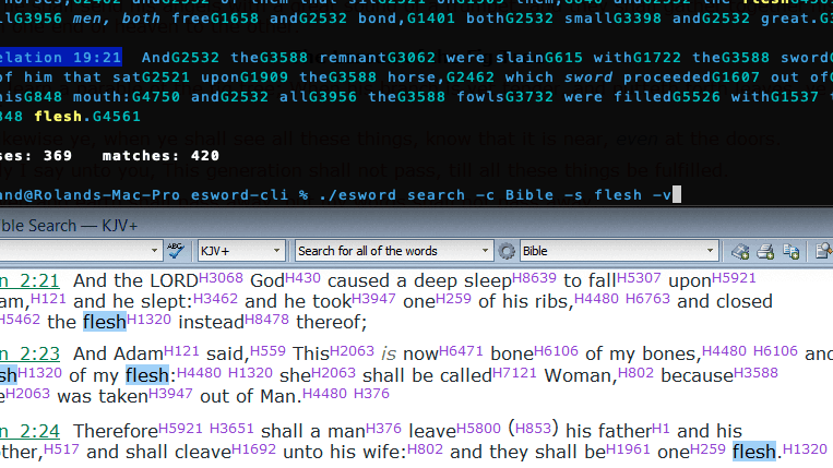 Command line utility to test and verify word matches/patterns in the King James Version Bible with Greek and Hebrew Strong Codes